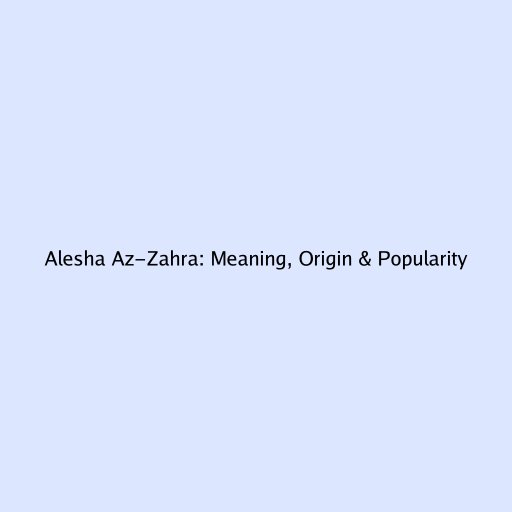 Alesha Az-Zahra: Meaning, Origin & Popularity