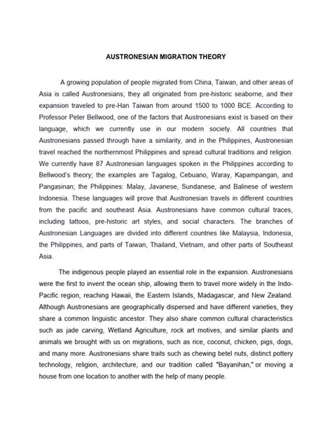 Hey guys! Ever wondered how people spread across Southeast Asia and the Pacific Islands? Well, buckle up because we’re diving deep into the Austronesian Migration Theory ! This theory is super important in understanding the history and peopling of our region. Basically, it tries to explain how people who speak languages from the Austronesian family (think Tagalog, Malay, Javanese, Hawaiian, and many more!) spread across such a vast area. It’s like a real-life puzzle, and the Austronesian Migration Theory is one of the leading attempts to solve it.