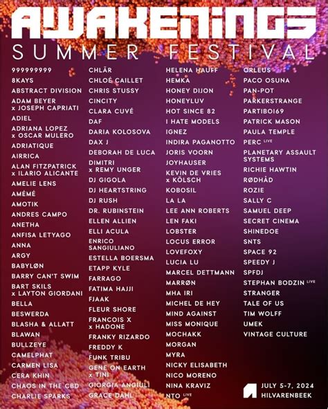 Okay, let’s get to the juicy part: the lineup! While the full lineup for Awakenings Netherlands 2024 isn’t always released super early, you can expect a stellar cast of techno heavyweights and rising stars. Think names like Adam Beyer, Charlotte de Witte, Amelie Lens, Richie Hawtin, and countless others. Keep checking the official Awakenings website and social media channels for the latest announcements.