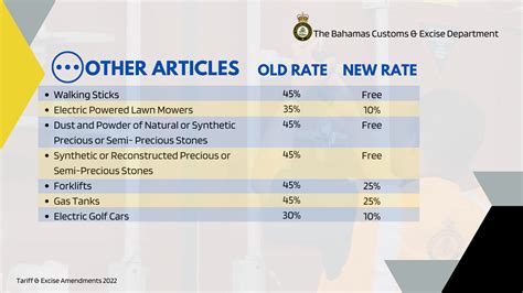 First off, there are exemptions based on the type of goods . Certain items may be exempt from tariffs due to their nature or intended use. This could include items like scientific equipment, educational materials, or goods imported for charitable purposes. The Bahamas, like many nations, recognizes the importance of these items and facilitates their import by offering tariff exemptions. Then there are exemptions for goods imported for specific industries . For example, goods intended for use in the tourism sector may be eligible for exemptions to support this key industry. This could include furniture, equipment, or supplies needed by hotels, resorts, and other tourism-related businesses. Certain industries, such as manufacturing and processing, might also benefit from exemptions on raw materials and components needed for production. Also, the government often grants exemptions for goods imported by specific organizations or individuals . This may include diplomatic missions, international organizations, or individuals who meet certain criteria. The rules vary, so it is crucial to stay informed. Lastly, there are exemptions related to the origin of the goods . The Bahamas has trade agreements with several countries, which can lead to preferential tariff rates or exemptions for goods originating from those countries. This means that goods from these countries can enter the Bahamas at a lower tariff rate, or even duty-free, helping to foster trade relations and stimulate economic activity.