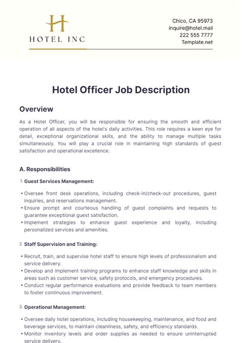 Alright, let’s get down to brass tacks: what does an advance hotel officer actually do? The role is far more multifaceted than you might think. Generally, an advance hotel officer is someone who holds a supervisory or managerial position within a hotel, often overseeing a specific department or a group of employees. Their primary responsibility is to ensure the smooth and efficient operation of their designated area, leading to excellent guest experiences and operational success. This means they are often the point person for addressing guest issues, managing staff, and making sure the hotel runs like a well-oiled machine. But, the specifics can vary greatly depending on the size and type of hotel.