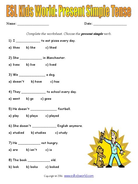 Alright, guys, let’s talk about the present simple tense. It’s the go-to tense for talking about habits, routines, facts, and general truths. Think of it as the workhorse of English grammar. It’s used so frequently that mastering it is super important if you want to speak and write English with confidence. Understanding the structure of the present simple is the first step. The basic structure is pretty straightforward: subject + base form of the verb (for I, you, we, they) or subject + verb + -s/-es (for he, she, it). For example, “I eat breakfast every morning” or “She studies English.” It’s that simple! But remember those pesky third-person singular verbs? They get an ’s’ or ‘es’ at the end. Don’t forget that! Let’s not forget about forming questions and negatives. To make a question, you’ll typically use do or does before the subject: “Do you like coffee?” or “Does he work here?” To form a negative sentence, use do not or does not (don’t or doesn’t): “I do not (don’t) eat meat.” Now we’re cooking with gas! The present simple is used in all sorts of situations. Everyday routines: “I wake up at 7 am.” General facts: “The sun rises in the east.” Habits: “I often watch movies.” Scheduled events: “The train leaves at 3 pm.” Knowing when to use it will make your English sound more natural and fluent. The secret is practice, practice, practice! The more you use it, the more comfortable you’ll become. By doing the gap fill exercise you can practice the present simple tense.