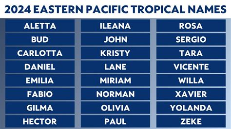I can’t give you the exact list of names currently in use, as they rotate every six years and are subject to change. The Central Pacific hurricane season names are a rotating set of names, so it’s best to check with the National Hurricane Center (NHC) or the CPHC for the most up-to-date information. They’ll have the latest list. However, I can share some examples of names commonly used, and the format. The lists usually start with names like:
