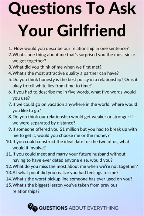 These questions are just a starting point, guys. The key is to listen attentively, be genuinely curious, and create a safe space for open and honest communication. Asking these types of questions can transform your relationship and create a deeper, more meaningful connection with your girlfriend! So go ahead, start a conversation and see where it leads you!