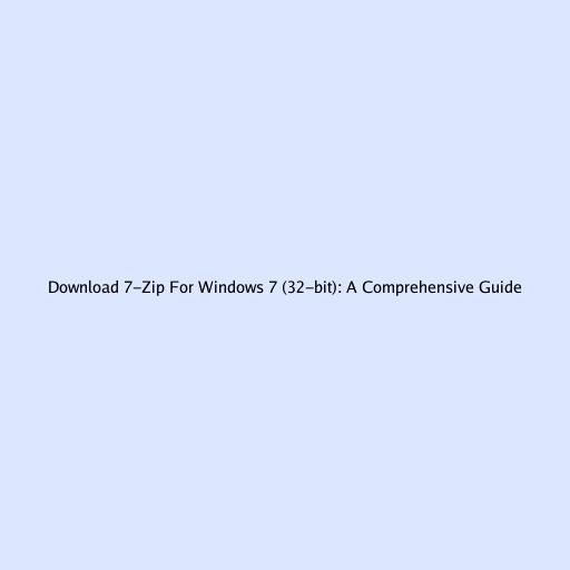 Download 7-Zip For Windows 7 (32-bit): A Comprehensive Guide