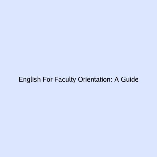 English For Faculty Orientation: A Guide