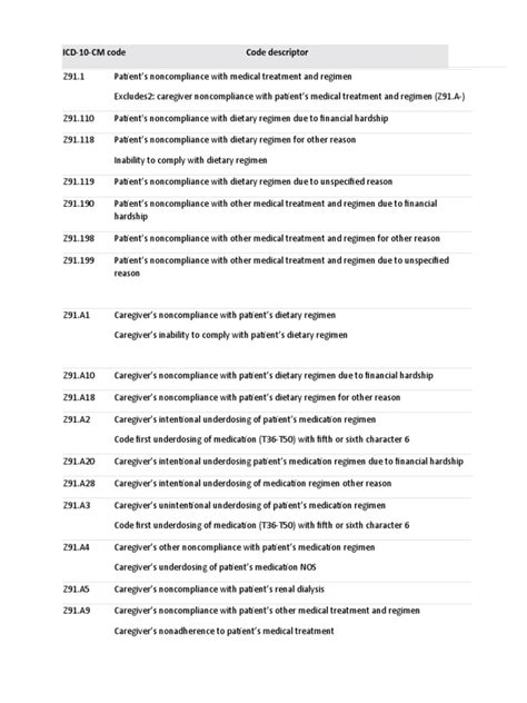 Alright, let’s get down to the nitty-gritty of ICD-10 Z91.1 . This code, at its core, refers to a patient’s noncompliance with medical treatment and regimen . When a healthcare provider uses Z91.1 , they are essentially documenting that a patient is not fully adhering to a prescribed course of action designed to manage their health condition. Now, this isn’t a judgment; it’s a descriptive code. It signals to others in the healthcare system that there’s a deviation from the recommended treatment plan, which could be anything from not taking medication as prescribed, missing appointments, not following dietary restrictions, or failing to complete physical therapy exercises. The beauty (and complexity) of ICD-10 Z91.1 is its broad scope, allowing it to capture various forms of noncompliance without getting into the why just yet – that’s where the clinical documentation becomes even more critical. Think of it as a flag that says, “ Hey, something’s off here, and it might be impacting this patient’s health journey. ” This code is super important for accurate billing, as it provides context for why certain tests or procedures might be necessary if the original treatment isn’t working due to noncompliance. It also plays a vital role in research, allowing researchers to study patterns of noncompliance and develop more effective interventions. Moreover, from a public health perspective, understanding the prevalence of patient noncompliance through these codes helps allocate resources for patient education and support programs. It’s about recognizing that healthcare isn’t a one-way street, and the patient’s active participation is a massive part of successful outcomes. The term noncompliance itself can sometimes feel a bit harsh, but in the clinical coding world, it’s a neutral descriptor. It doesn’t inherently imply willful refusal, though it can include that. More often, it encompasses a range of reasons, many of which are unintentional or driven by circumstances beyond the patient’s immediate control. This code is crucial for demonstrating medical necessity and understanding the trajectory of a patient’s illness, especially when a condition isn’t improving as expected despite a seemingly appropriate treatment plan. For instance, if a diabetic patient’s blood sugar levels remain uncontrolled, and the provider documents Z91.1 due to the patient not following dietary guidelines or medication schedule, it helps explain why further interventions might be needed. Without such a code, it would be harder to justify continuing specific treatments or requesting additional diagnostic tests based on a seemingly failing initial approach. So, while it seems simple, ICD-10 Z91.1 is a powerful tool for clear, concise communication in the complex world of healthcare documentation.