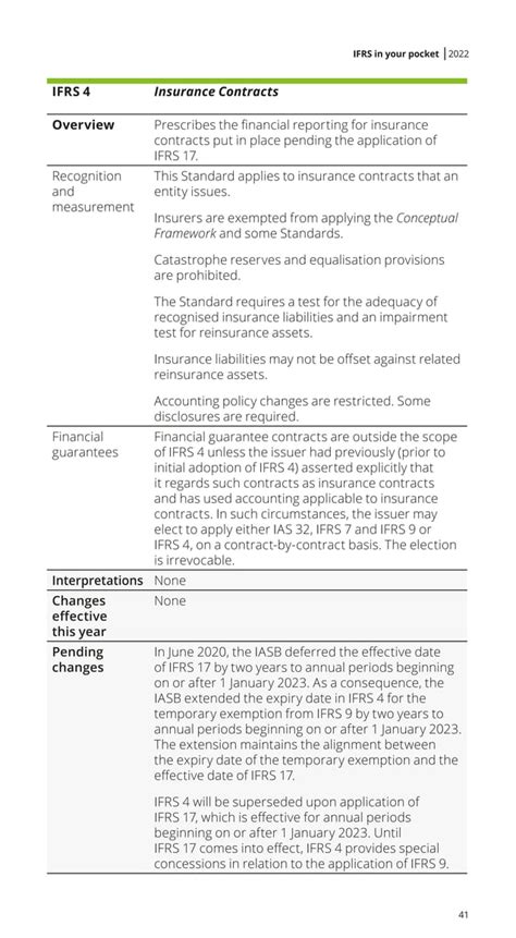 What makes the IFRS Pocket Guide 2022 such a valuable tool? Let’s dive into some of its key features. First and foremost, the guide offers concise summaries of the main IFRS standards. These summaries break down complex regulations into easily digestible chunks, making it easier to grasp the core principles without getting bogged down in technical jargon. Practical examples and illustrations are another critical feature. These examples show how the standards are applied in real-world scenarios, helping to bridge the gap between theory and practice. The guide typically includes updated information reflecting the latest amendments and interpretations of IFRS. This ensures that you have access to the most current and accurate information. The layout is usually designed for easy navigation , with clear headings, cross-references, and an index to help you quickly find the information you need. Many guides also include quick reference tables and charts , which summarize key concepts and calculations. This allows for quick access to essential information. Some versions even provide interactive elements , such as links to relevant websites or further reading materials. Another key feature is the focus on practical application . The guide often includes case studies or examples that demonstrate how to apply IFRS in various situations. It helps users understand how to record, measure, and present financial information according to IFRS. By providing these essential features, the IFRS Pocket Guide 2022 equips finance professionals with the knowledge and tools they need to navigate the complexities of international financial reporting effectively.