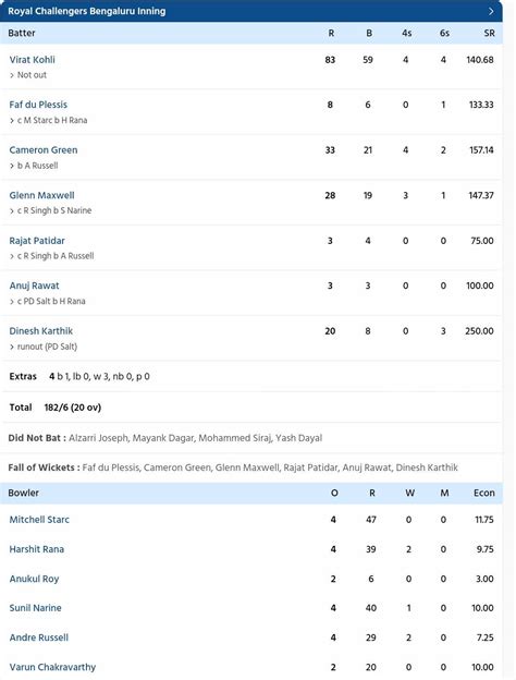 Kolkata Knight Riders Innings