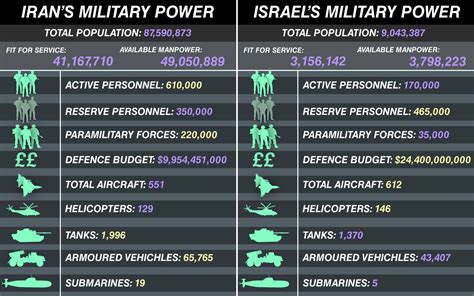 Hey guys! Let’s dive into a comparison of the military powers of Israel and Iran. It’s a hot topic, and understanding the strengths and weaknesses of each side is super important. We’ll break it down in a way that’s easy to grasp, so you can get a clear picture of where things stand. Get ready for an in-depth look at the arsenals, strategies, and overall capabilities of these two major players in the Middle East. This comparison aims to provide a balanced perspective, considering various factors that contribute to military strength. Whether you’re a seasoned expert or just curious about international relations, this analysis will offer valuable insights into the complex dynamics at play. So, buckle up and let’s explore the world of military might!