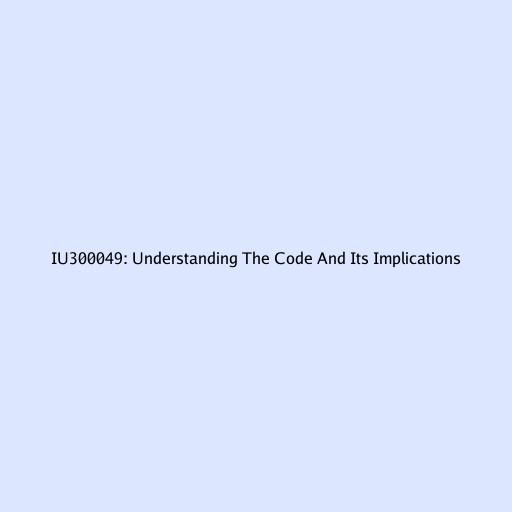 Hey guys! Today, we’re diving deep into something that might seem like a random string of characters at first glance: IU300049 . But trust me, behind this alphanumeric code lies a world of information and potential implications. Whether you’ve stumbled upon this code in a database, a document, or an error message, understanding what it signifies can be incredibly valuable. So, let’s break it down, shall we?