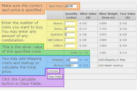 Calculating the value of junk silver involves a few simple steps. First, you need to determine the silver content of the coins you have. Most junk silver coins are 90% silver, meaning that 90% of their weight is pure silver. The remaining 10% is typically copper, which adds durability to the coins. Next, you need to know the weight of the coins. A standard U.S. 90% silver dime contains approximately 0.0723 troy ounces of silver, a quarter contains about 0.1808 troy ounces, and a half-dollar contains roughly 0.3617 troy ounces. Once you have the silver content per coin, multiply that by the current spot price of silver to find the silver value of each coin. For example, if the spot price of silver is \(25 per troy ounce and you have a 90% silver quarter, its silver value would be approximately \) 4.52 (0.1808 troy ounces x \(25). Keep in mind that this calculation only reflects the silver value of the coin. The actual price you might pay or receive for junk silver can vary depending on several factors, including the dealer's markup, transaction fees, and the overall market demand for junk silver. To calculate the value of a bag of junk silver, you need to know the face value of the coins in the bag. For example, a bag of junk silver with a face value of \) 100 typically contains 71.5 troy ounces of pure silver. To find the silver value of the bag, multiply the number of troy ounces by the current spot price of silver. If the spot price is \(25 per troy ounce, the silver value of the bag would be \) 1,787.50 (71.5 troy ounces x $25). Again, this is just the silver value, and the actual price you might pay or receive could be different. It’s essential to consider other factors like dealer premiums and market conditions. Dealer premiums are the extra fees that dealers charge above the silver value of the coins. These premiums cover the dealer’s costs and profit margin. The premium can vary depending on the dealer, the quantity of junk silver you’re buying or selling, and the current market conditions. During times of high demand, premiums may increase, while during periods of low demand, they may decrease. Transaction fees can also affect the overall cost of buying or selling junk silver. Some dealers charge fees for processing transactions, especially when dealing with large quantities of coins. These fees can include credit card fees, wire transfer fees, or shipping and handling charges. It’s essential to factor these fees into your calculations to get an accurate estimate of the total cost. The overall market demand for junk silver can also influence its price. If there’s high demand for junk silver, dealers may be willing to pay a higher price to acquire it. Conversely, if there’s low demand, they may offer a lower price. Market sentiment and economic conditions can play a significant role in determining the demand for junk silver. By considering all these factors, you can make a more informed decision about buying or selling junk silver. Keep in mind that the value of junk silver can fluctuate with the spot price of silver , so it’s essential to stay updated on the latest market trends. Consulting with a reputable coin dealer or financial advisor can also provide valuable insights and guidance.