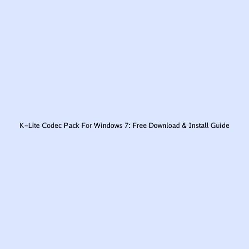 K-Lite Codec Pack for Windows 7: Free Download & Install Guide
