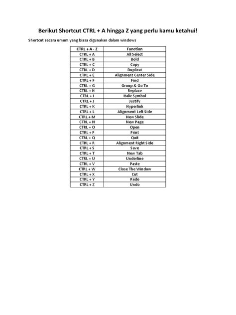Hey guys, tahukah kalian kalau komputer punya banyak banget jalan pintas alias shortcut yang bisa bikin kerjaan kalian jadi super cepat? Nah, kali ini kita bakal kupas tuntas semua shortcut Ctrl dari A sampai Z yang wajib banget kalian tahu. Siap-siap deh, workflow kalian bakal berubah drastis!