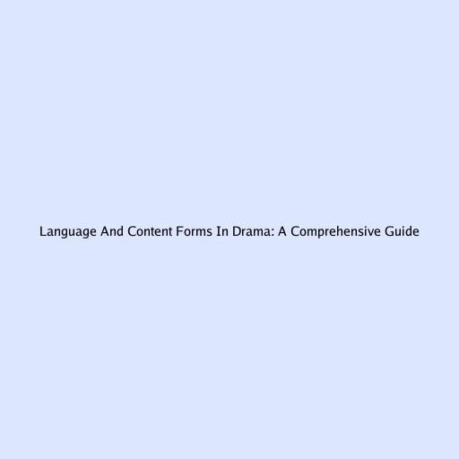 Language And Content Forms In Drama: A Comprehensive Guide