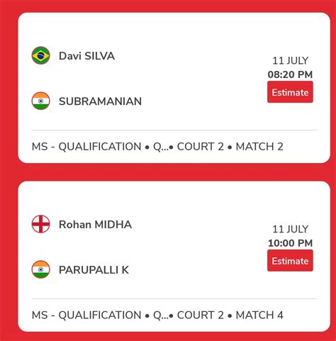 • Tournament Name: The schedule will specify which tournament the match belongs to, such as the All England Open, the World Championships, or the Olympics. This helps you keep track of the significance of the match.