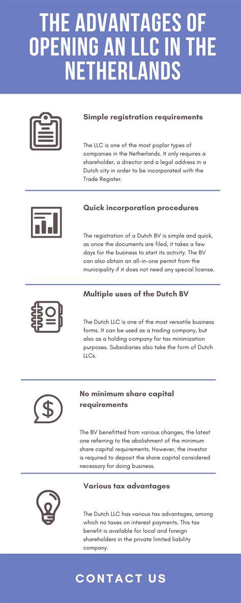 Okay, so we’ve touched on the basics. Now, let’s look at the cool stuff: the benefits! Why should you consider forming an LLC Netherlands ? Well, for starters, there’s limited liability . This is the big one. As mentioned earlier, your personal assets are shielded from business debts. This is a game-changer, especially if you’re taking on significant financial risks. It provides peace of mind, knowing that your personal finances are protected.