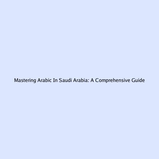 Mastering Arabic in Saudi Arabia: A Comprehensive Guide