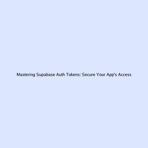 Mastering Supabase Auth Tokens: Secure Your App's Access