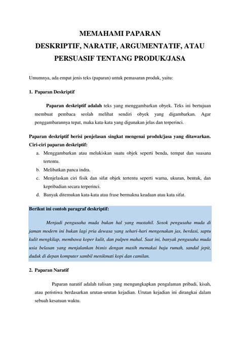Oke, guys, biar makin kebayang gimana sih persentase deskriptif ini dipakai di dunia nyata, mari kita lihat beberapa contohnya di berbagai bidang. Ini bakal nunjukkin betapa fleksibel dan pentingnya konsep ini. Pertama, di bidang Pemasaran dan Penjualan . Bayangin ada laporan penjualan, daripada cuma bilang “Penjualan naik 15%”. Kita bisa bilang, “ Peningkatan penjualan yang solid sebesar 15% di kuartal ini, didorong oleh kampanye produk baru kita yang sangat sukses dan mencapai lebih dari separuh target audiens kita.” Di sini, “peningkatan solid” dan “sangat sukses” memberi kesan positif, sementara “lebih dari separuh” memberi gambaran kuantitatif yang mudah dipahami tentang jangkauan kampanye. Kedua, di Laporan Keuangan . Kalau ada “Beban operasional naik 10%”. Kita bisa ubah jadi, “ Kenaikan beban operasional yang moderat sebesar 10%, yang sebagian besar disebabkan oleh investasi strategis dalam teknologi baru untuk efisiensi jangka panjang.” Kata “moderat” memberi persepsi bahwa kenaikan itu tidak mengkhawatirkan, dan penjelasannya tentang investasi memberikan alasan yang kuat. Ketiga, di Hasil Survei Kepuasan Pelanggan . Angka “Kepuasan pelanggan 80%” bisa dipercantik jadi, “ Tingkat kepuasan pelanggan yang sangat tinggi , mencapai 80%, yang berarti mayoritas besar pelanggan kami merasa puas dengan pengalaman mereka, dengan hanya sebagian kecil (20%) yang melaporkan adanya keluhan minor.” Ini memberikan gambaran yang lebih jelas tentang seberapa bagusnya hasil survei tersebut. Keempat, di Bidang Kesehatan . Misalnya, “Angka kesembuhan pasien 95%”. Bisa jadi, “ Tingkat kesembuhan pasien yang luar biasa tinggi , yaitu 95%, menunjukkan efektivitas pengobatan yang kami berikan, dengan hampir semua pasien menunjukkan pemulihan penuh.” Kata “luar biasa tinggi” dan “hampir semua” memberikan penekanan positif dan meyakinkan. Kelima, di Statistik Sosial atau Kependudukan . Kalau “Tingkat kemiskinan turun 5%”. Kita bisa bilang, “ Penurunan tingkat kemiskinan yang signifikan sebesar 5% dalam lima tahun terakhir, menunjukkan kemajuan yang positif dalam kesejahteraan masyarakat, meskipun tantangan masih ada untuk segmen populasi minoritas .” Ini memberikan gambaran kemajuan sambil tetap mengakui adanya area yang perlu diperbaiki. Jadi, di setiap bidang, kuncinya adalah menambahkan kata-kata yang memberikan ‘rasa’ atau ‘nuansa’ pada angka persentase, sehingga informasinya menjadi lebih kaya, mudah dicerna, dan persuasif. Ini menunjukkan kalau kita nggak cuma ‘main’ angka, tapi kita benar-benar memahami apa arti angka itu dan bisa menyampaikannya dengan baik kepada orang lain. Keren kan?