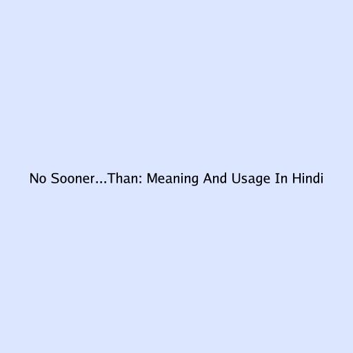 No Sooner...Than: Meaning And Usage In Hindi