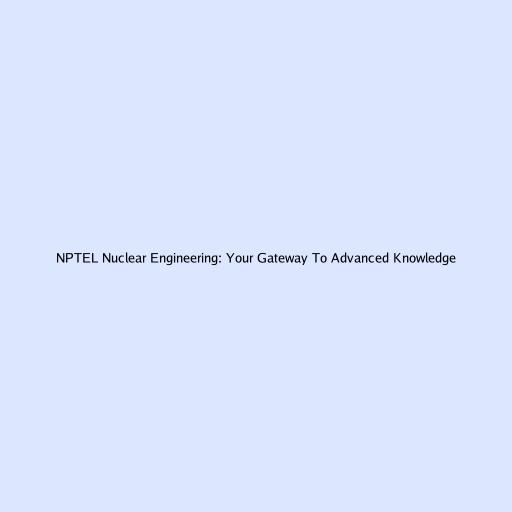 NPTEL Nuclear Engineering: Your Gateway To Advanced Knowledge