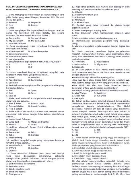 Kedua , ada Logika Pemrograman dan Pemecahan Masalah . Di sini, kemampuan kalian untuk berpikir secara sistematis dan memecah masalah kompleks menjadi bagian-bagian yang lebih kecil akan diuji. Kalian mungkin akan diberikan deskripsi masalah yang nggak langsung kelihatan solusinya, dan kalian harus bisa menerjemahkannya ke dalam logika pemrograman. Ini bisa melibatkan pemahaman tentang conditional statements (if-else), loops (for, while), dan bagaimana menggunakannya untuk membuat program yang bisa diandalkan. Seringkali, soal di sini mengharuskan kalian untuk menulis kode programnya sendiri menggunakan bahasa pemrograman yang ditentukan, misalnya C++, Pascal, atau Python.