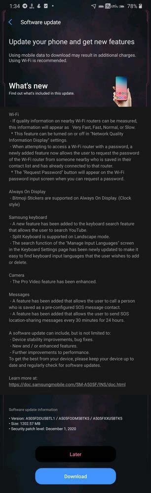 Checking for security updates on your Galaxy A50 is a simple process. Go to Settings > Software Update > Download and install. Your device will check for available updates, including security patches. If an update is available, download and install it to keep your device secure. It’s a good practice to check for updates regularly to ensure that your device is always protected.