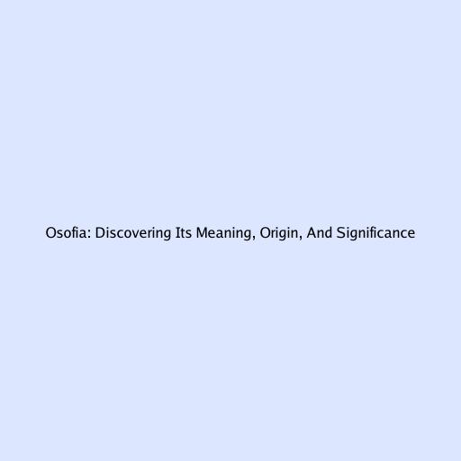 Osofia: Discovering Its Meaning, Origin, And Significance