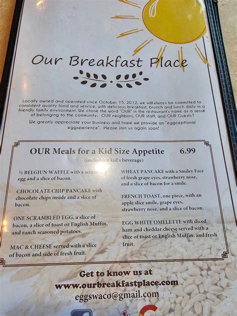 Planning your visit is essential to ensure you have a smooth and enjoyable experience. Knowing the location, hours, parking situation, and contact information will help you avoid any unnecessary stress. So, take a few minutes to gather the information you need, and get ready to enjoy a delicious breakfast at Our Breakfast Place Waco!