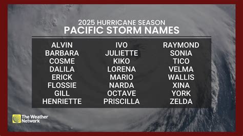 Alright, the moment you’ve probably been waiting for! Let’s get down to the nitty-gritty: the official list of Pacific hurricane names for 2025 . Remember, the Eastern North Pacific basin has its own distinct list, and it’s separate from the Atlantic. This list is used sequentially for tropical storms that reach a sustained wind speed of 39 miles per hour or higher. It’s always exciting, and sometimes a bit nerve-wracking, to see the names for the upcoming season. This list is maintained by the WMO and is used for storms forming between May 15 and November 30.