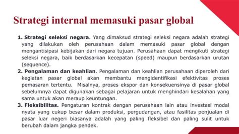 Memasuki pasar global itu nggak semudah membalikkan telapak tangan, lho. Ada banyak tantangan yang harus dihadapi. Mulai dari perbedaan budaya, bahasa, regulasi pemerintah di tiap negara, sistem pembayaran, sampai masalah logistik dan transportasi. Makanya, perusahaan yang mau sukses di pasar global harus punya strategi yang matang, riset pasar yang mendalam, dan adaptasi yang baik terhadap kondisi lokal.