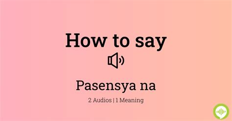 Hey guys! Ever stumbled upon the word “pasensya” and felt your tongue do a little twist? Don’t worry; you’re not alone! This Filipino word, which packs a whole lot of meaning into its syllables, can be a bit tricky for non-Tagalog speakers. But fear not! In this article, we’re going to break down the pronunciation of “pasensya” step by step, explore its various meanings, and even throw in some fun facts and usage tips to make you a “pasensya” pro in no time. So, let’s dive right in and unlock the secrets of this versatile word!