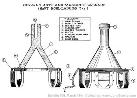 Internally, the grenade’s design would be focused on maximizing its anti-tank capabilities. If it employs a shaped charge, it would feature a conical cavity lined with a metal such as copper or steel. When the explosive detonates, the force is concentrated into this cavity, forming a high-speed jet of molten metal that can penetrate armor. The effectiveness of a shaped charge depends on factors such as the size and shape of the cone, the type of explosive used, and the standoff distance between the grenade and the target. Alternatively, if the Phafthohlladung grenade is a stick grenade variant, it would likely contain a large quantity of high explosive, designed to deliver a concussive blast against the tank. In this case, the stick would provide leverage for throwing, allowing the soldier to achieve greater distance and accuracy.