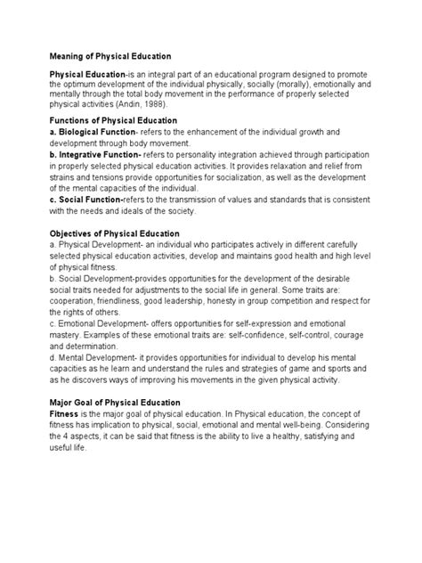 Okay, let’s clear up some common misconceptions about physical education because there are quite a few floating around! One major one is that PE is just playtime . While games and fun activities are definitely part of PE, it’s much more structured than just letting kids run wild. There’s a curriculum, learning objectives, and assessments involved. Another misconception is that PE is only for athletes . Not true at all! PE is designed for everyone, regardless of their athletic ability. The focus is on developing fundamental movement skills, promoting physical fitness, and fostering healthy habits for all students. People also think that PE is a waste of time that could be better spent on academics . Actually, studies have shown that physically active students tend to perform better academically. Exercise improves cognitive function, concentration, and memory, which can enhance learning. Then there’s the idea that PE teachers are just glorified babysitters . PE teachers are trained professionals who have expertise in physical education, exercise science, and pedagogy. They design and implement effective PE programs that meet the needs of all students. Some believe that PE is not important for students who are already active in sports . Even if students participate in sports outside of school, PE can still provide them with valuable knowledge and skills related to health, fitness, and nutrition. It can also help them develop a broader range of movement skills. And finally, the misconception that PE is the same as recess . Recess is unstructured playtime, while PE is a structured learning environment with specific goals and objectives. PE provides opportunities for students to learn about health, fitness, and movement in a safe and supportive setting. So, let’s dispel these myths and recognize the true value of physical education as an essential component of a well-rounded education.
