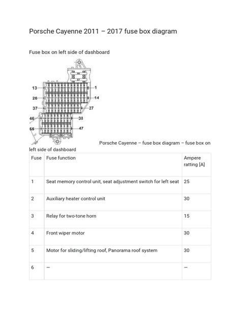 There you have it! This guide has covered the Porsche Cayenne 2012 fuse box diagram , helping you keep your car’s electrical systems in tip-top shape. By understanding your fuse boxes, knowing what each fuse does, and following these troubleshooting steps, you can tackle many electrical issues yourself. Remember to always consult your owner’s manual for specific diagrams and fuse locations for your model. And if you’re ever in doubt, don’t hesitate to seek help from a qualified mechanic. Safe driving, everyone!