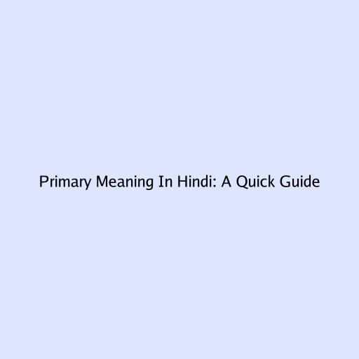 Primary Meaning In Hindi: A Quick Guide