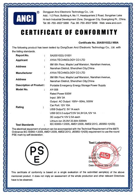 4. Certification (for Specified Products): If your product passes the testing and meets all the requirements, the CAB will issue a certificate of compliance. This certificate is your golden ticket to affixing the PSE Diamond mark to your product.