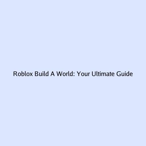 Roblox Build a World: Your Ultimate Guide