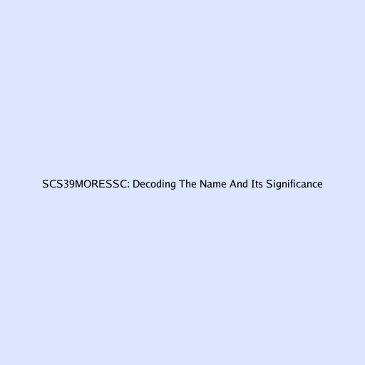 Decoding the Nomenclature: What Does SCS39MORESSC Stand For?