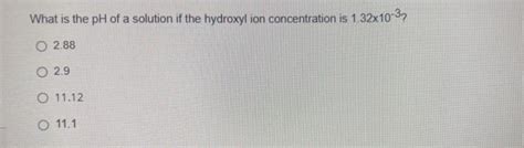 And there you have it! The pH of the solution with a hydroxyl ion concentration of 10⁻¹⁰ M is 4.