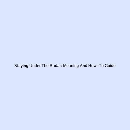 Staying Under The Radar: Meaning And How-To Guide