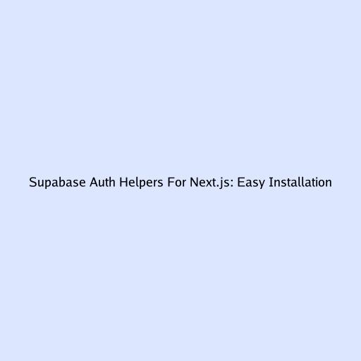 Supabase Auth Helpers For Next.js: Easy Installation