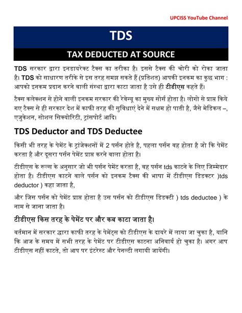 Hey guys, let’s dive into the world of Tax Deducted at Source , or TDS , and break it down in simple Hindi! You’ve probably heard this term floating around, especially when you get paid or when you make certain payments. So, what exactly is TDS, and why should you care? Think of TDS as an advance tax collection system that the Indian government uses. Instead of you having to remember to pay your entire tax liability at the end of the financial year, the government collects a small portion of it at the source of income. This makes tax compliance easier for everyone and ensures a steady revenue stream for the government. It’s like paying your dues bit by bit, so you don’t get a big shock later! This system is primarily governed by the Income Tax Act of 1961, and it applies to various types of payments, including salaries, interest, commission, brokerage, professional fees, and more. The person or entity making the payment (the deductor) is responsible for deducting TDS at the prescribed rate and depositing it with the government. The recipient of the payment (the deductee) gets the credit for this deducted amount when they file their income tax returns. Pretty neat, right? We’ll explore the nitty-gritty of TDS, including who needs to deduct it , when it applies , and how it benefits you . Stay tuned!