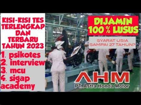 Hey guys! Lagi pada nyari info soal tes PT AHM 2023 nih, ya? Pas banget! Kalian datang ke tempat yang tepat. PT Astra Honda Motor (AHM) itu kan salah satu perusahaan otomotif terbesar di Indonesia, jadi wajar banget kalau banyak yang kepengen gabung. Nah, buat kalian yang lagi persiapan atau baru mau daftar, siap-siap ya, karena persaingannya ketat banget. Tapi jangan khawatir, dengan persiapan yang matang dan strategi yang tepat, peluang lolos tes PT AHM kalian bisa makin besar. Artikel ini bakal ngebahas tuntas segala hal yang perlu kalian tahu, mulai dari jenis tesnya, tips menghadapinya, sampai kebiasaan yang perlu dibiasain dari sekarang biar makin pede. Jadi, stay tuned ya!