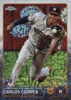 • 2015 Topps Chrome Rookie Cards : This is the big one, guys! His rookie cards from 2015 are the cornerstone of any Carlos Correa collection. The base rookie card is a great starting point, but the Refractor versions, especially the Superfractor and Autograph variations, are incredibly valuable and rare. These cards represent the genesis of Correa’s career and are considered the most desirable for collectors.