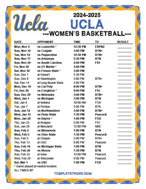 So, what are you waiting for? Dive into that official UCLA basketball schedule , mark those calendars, set those alerts, and get ready to cheer louder than ever! Every game, every tip-off, every buzzer-beater is a chance to make history and create unforgettable memories with our UCLA Bruins . Let’s support them every step of the way, whether they’re home at Pauley Pavilion or battling it out on the road. Your passion fuels their drive! Go Bruins!