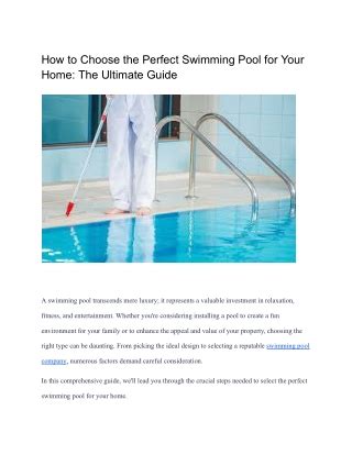 Ultimate Guide to Choosing the Perfect Swimming Pool