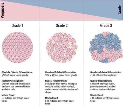 Grading: Pathologists assess how different the cancer cells look from normal breast cells. Grade 1 means the cells are well-differentiated, Grade 2 is moderately differentiated, and Grade 3 is poorly differentiated. The lower the grade, the slower the cancer is likely to grow and spread.