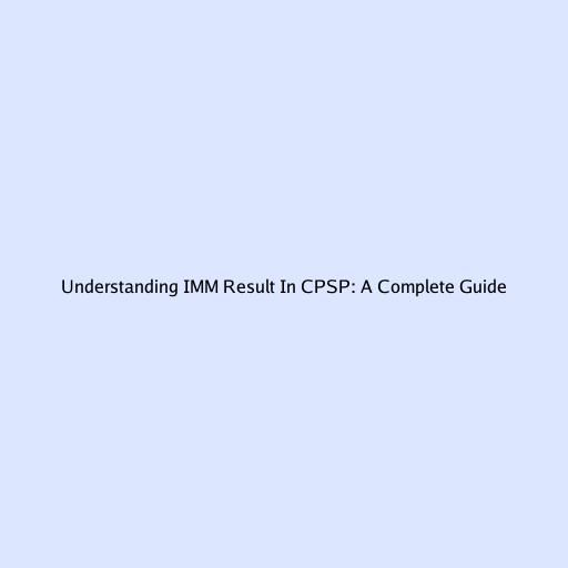 Understanding IMM Result in CPSP: A Complete Guide